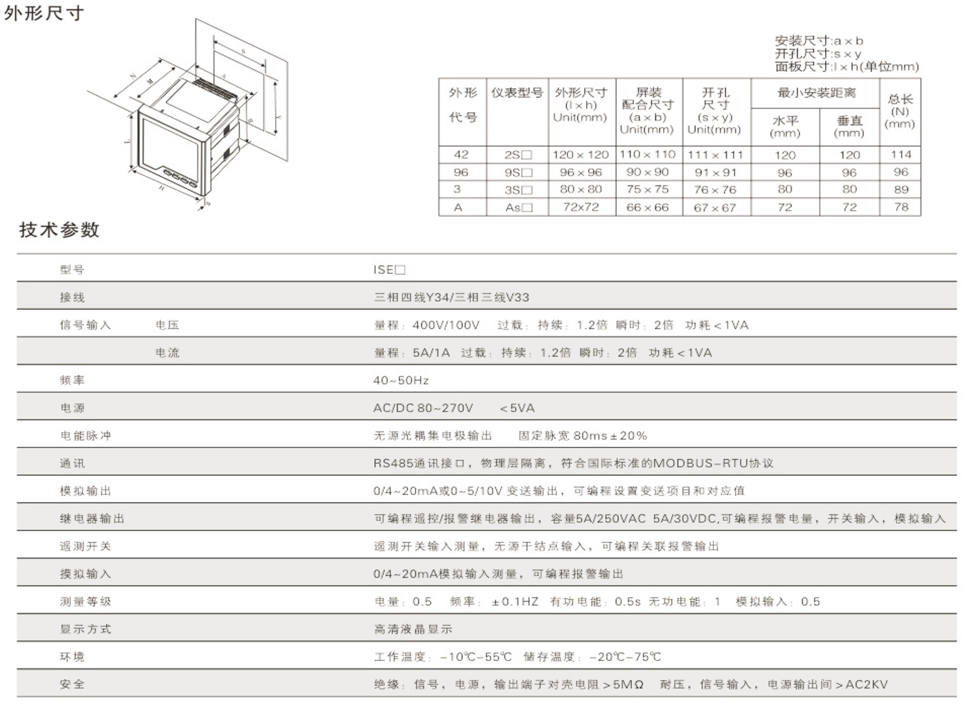 多功能电力仪表,是采用先进的微处理器和数字信号处理技术,通过直接交流采样,可测量电流、电压,有功功率、无功功率、功率因素、频率、有功电能、无功电能等电参数,同时还可选带开关量输^输出、模拟量变送输出、电能脉冲输出、RS485网络通讯功能。